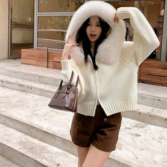 Cardigan à Capuche avec Col en Fourrure – Chaleur et Élégance au Rendez-vous